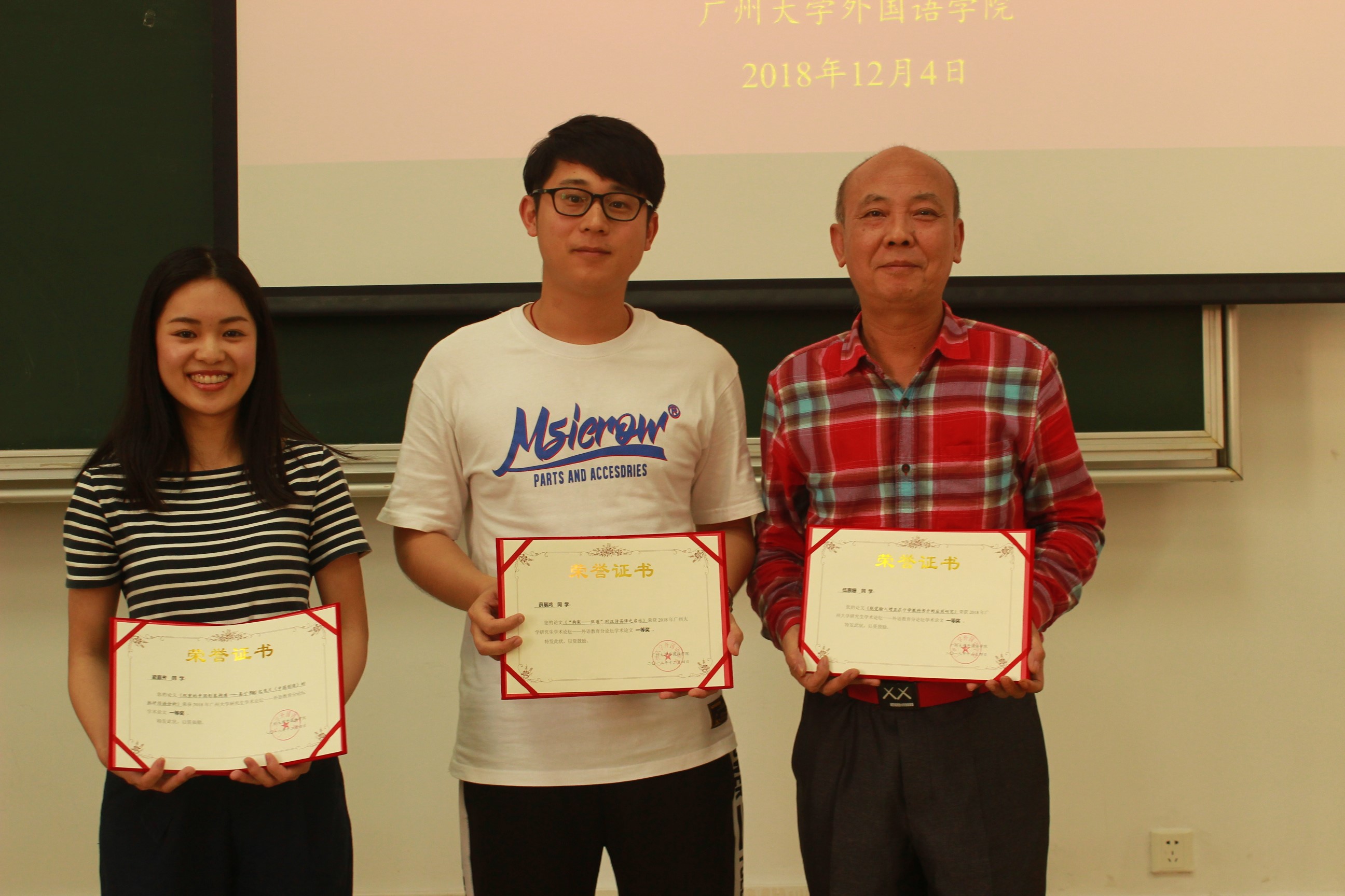 朱亚夫主任、徐俊仪副教授和杨冬玲副教授给本次论坛征文获奖者颁发奖状及奖品。