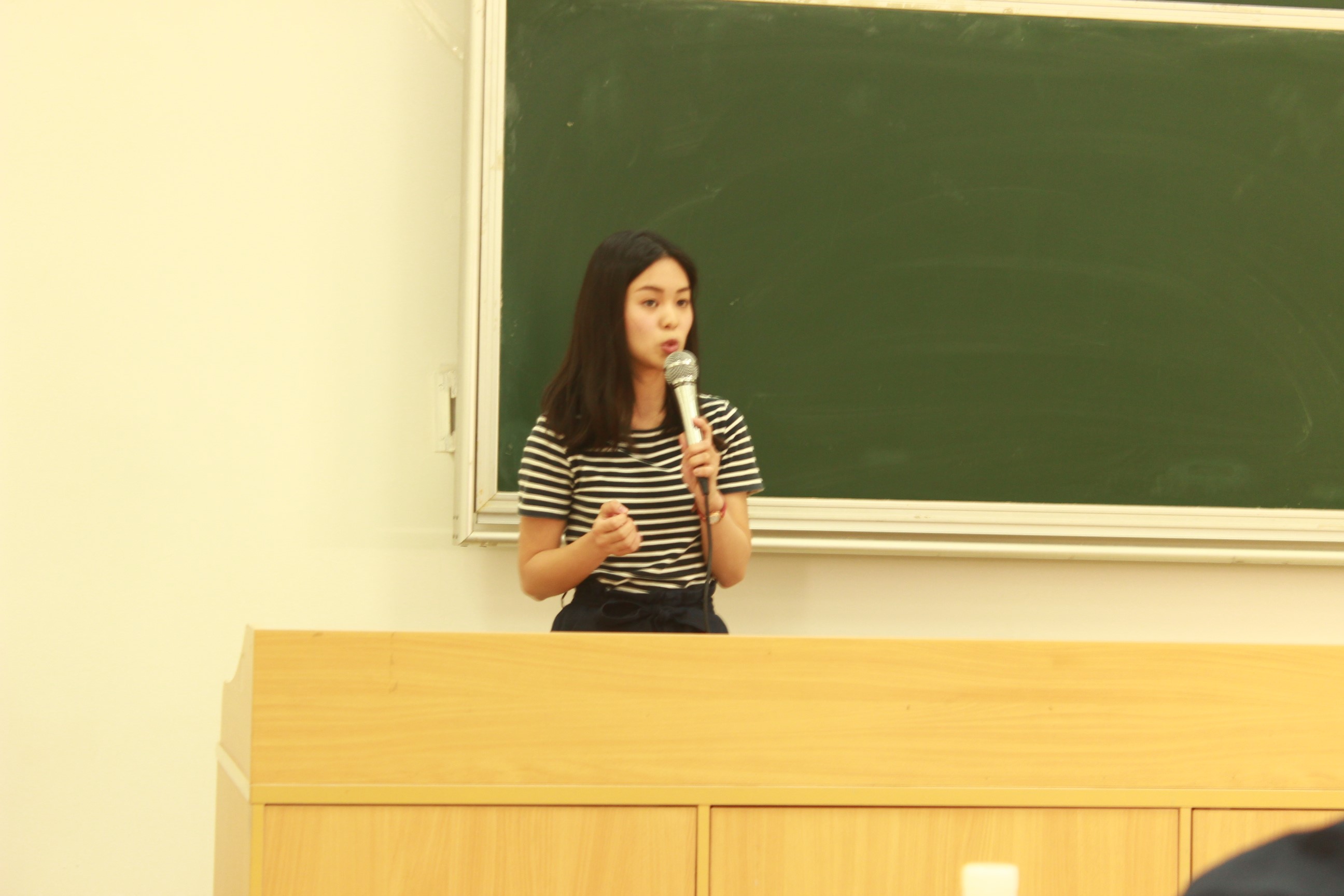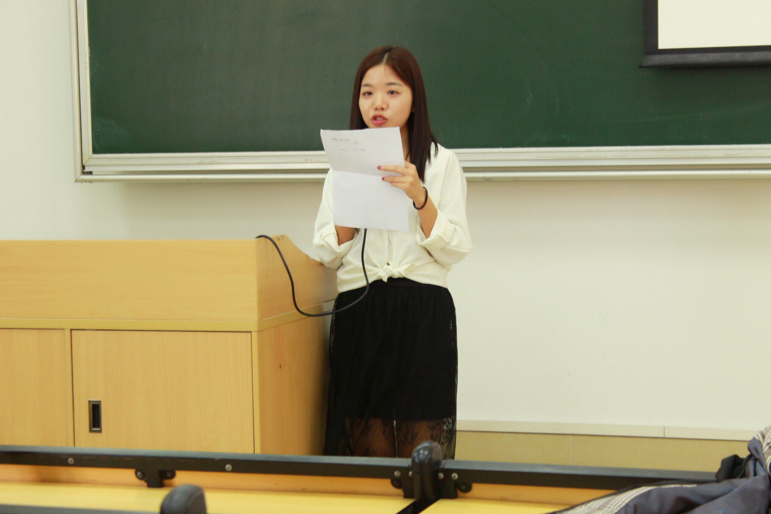 研究生分会主席邓海燕作为研究生代表发言,她告诫了在座的研究生们要在短暂的研究生生涯抓紧时间学习,扎实学术功底,要了解和熟悉本学科专业的最前沿动态,广泛参与各种相关学术讨论,勤写论文,多思考。