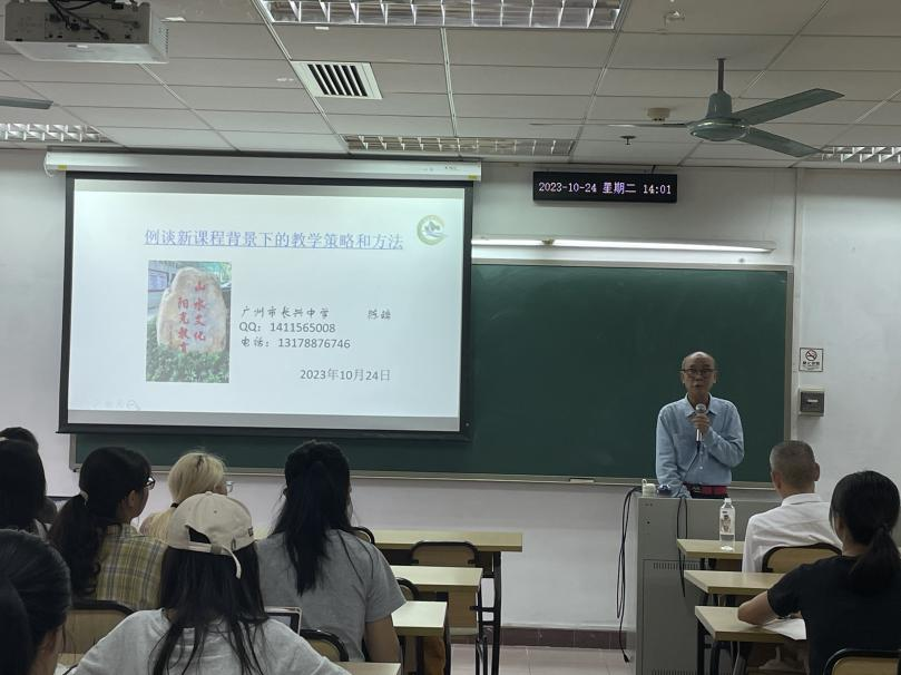 教育硕士做题为《例谈新课程背景下的教学策略和方法》的学术讲座。讲座由校级督导朱亚夫副教授主持。
