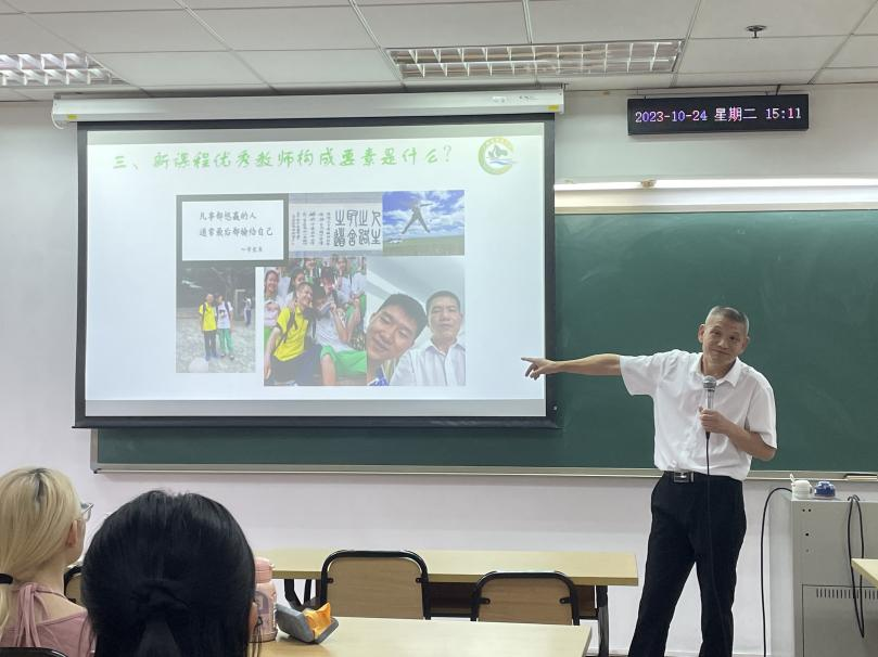 随后,陈校长以公开课视频为引导,通过介绍教育改革的前世今生,并结合自身经历重点讲述了新课程改革的“芯”。陈校长认为,全方位改革的核心在于“新教师”;教师应关注“怎样让孩子快乐地学习?”、“怎样让孩子高效地学习?”;应实施和善而坚定的正面教育。同时,陈校长也强调教师应修炼内心、提升思想境界,如此方能从容面对教学和学生。