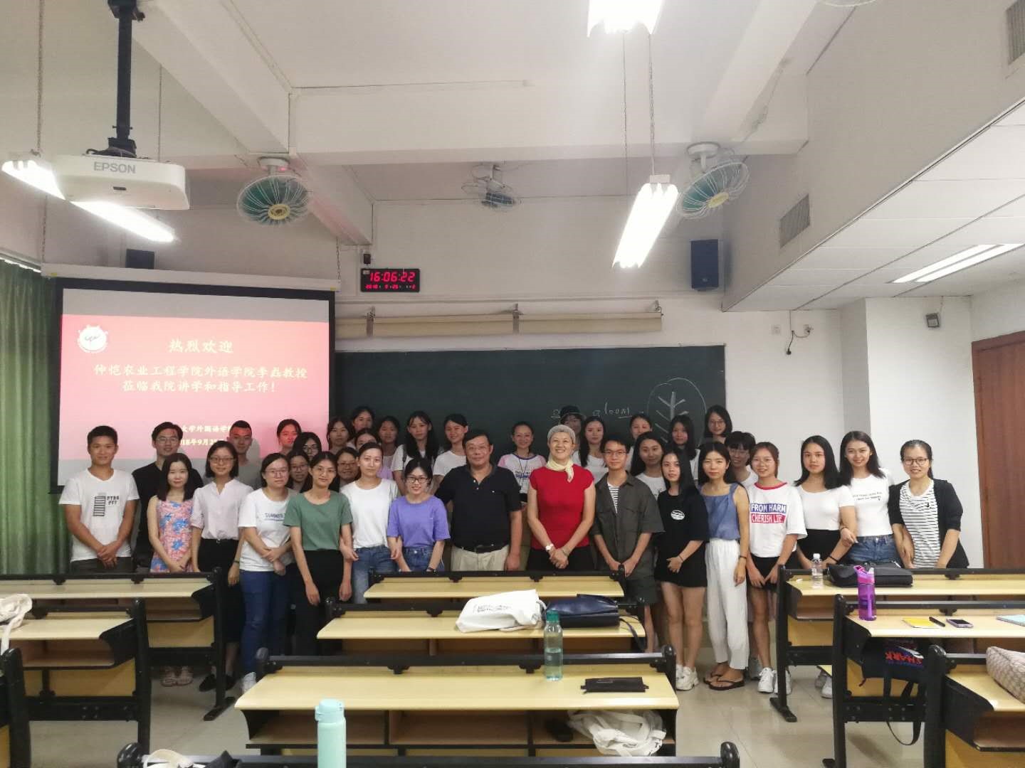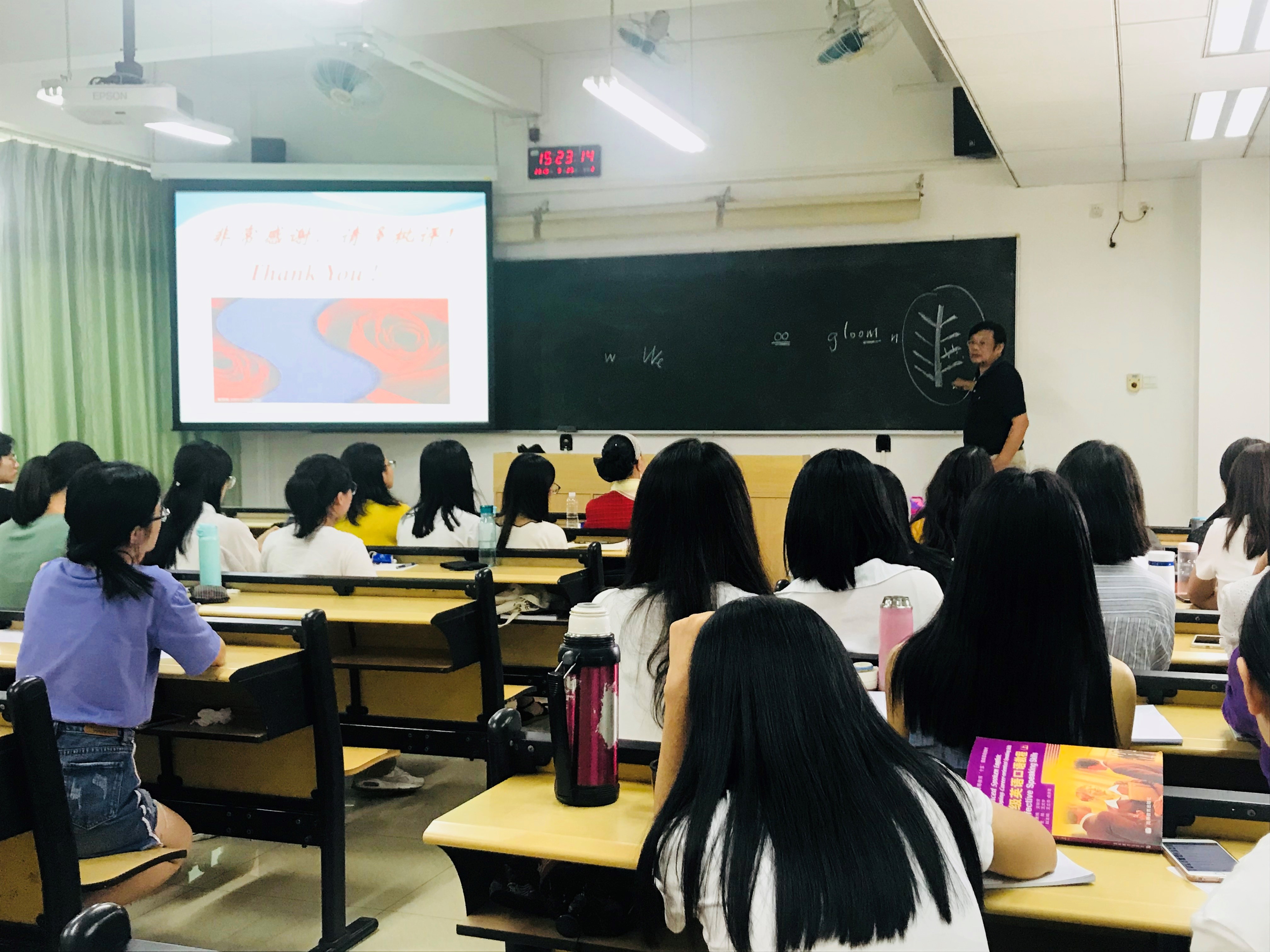 2018年9月25日下午,仲恺农业工程学院色漫网 李磊教授应邀来色漫网 做主题为“灵魂的投影,内心的独白---ee 肯明斯诗歌探讨”的讲座。讲座由色漫网 副院长蒋晓萍教授主持,色漫网 师生代表50余人聆听了本次精彩的讲座。