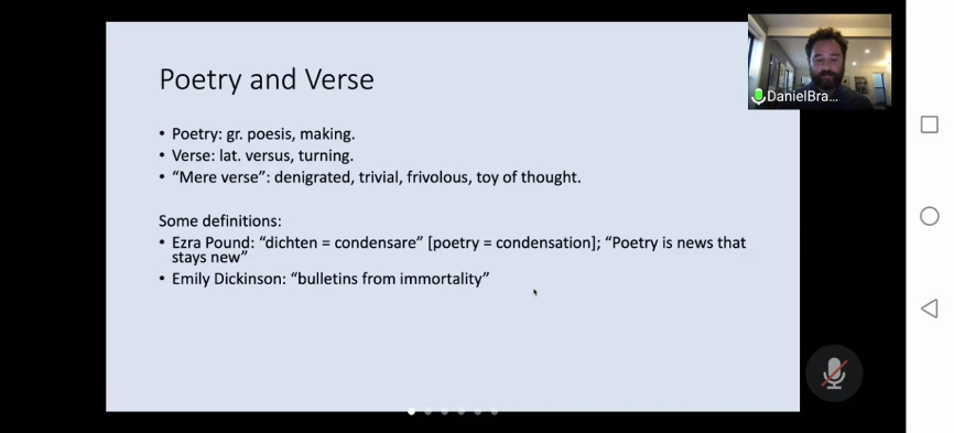 讲座中,Daniel博士对英语诗歌的一些基本元素和术语如“enjambment”、“rhyme”、“Sonnet”等做了说明和定义,并结合大量实例予以进一步阐释。讲座的最后四十分钟为提问时间,由于部分教师和同学对本次讲座中涉及的英语诗歌元素比较陌生,大家纷纷就自己的疑问请教Daniel博士,Daniel博士都一一给予了清晰的解释。