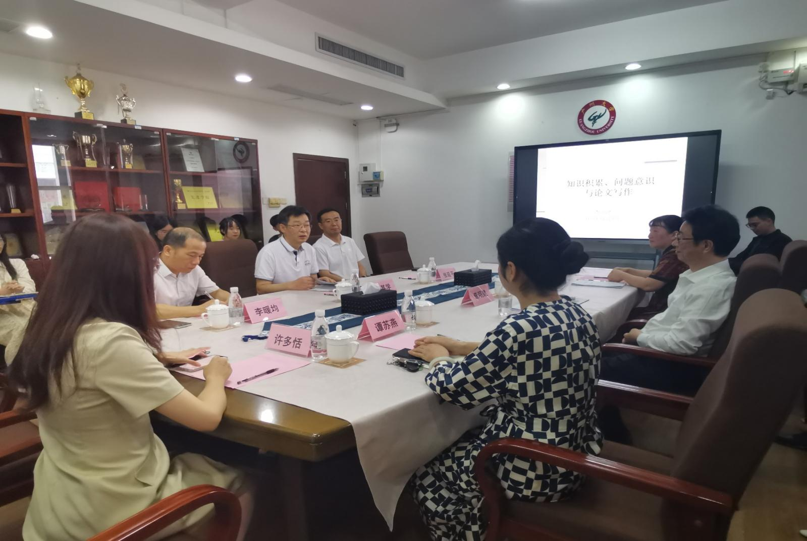 党委书记李暖均、副院长汪东萍教授、副院长谭苏燕副教授、学院党委副书记许多恬、部分教师和首届翻译专业硕士生参加了交流会和讲座,讲座由副院长汪东萍教授主持。