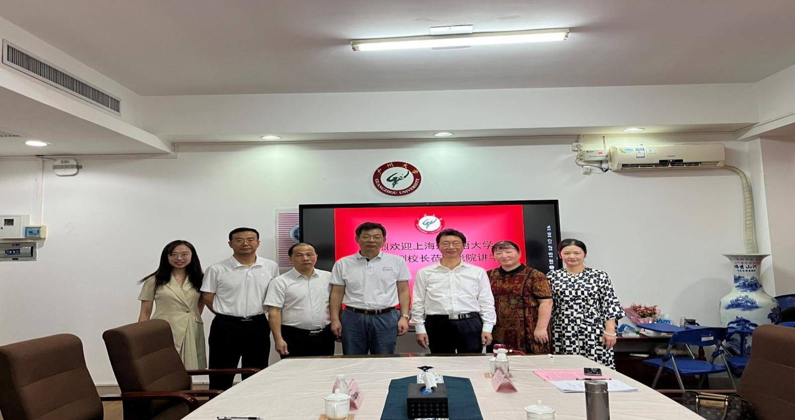 交流会上张其学副校长致辞,欢迎上海外国语大学查明建副校长莅临我校指导,并与查校长围绕外语学科人才培养和特色科研进行了深度交流,双方认为找准专业特色做精人才培养、发挥外语学科优势讲好湾区故事和岭南文化故事、促进跨学科交流合作是外语学科发展的有效途径。