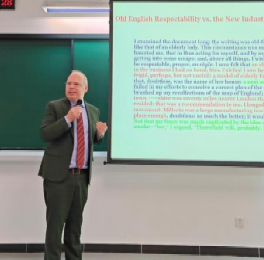 该讲座旨在分析夏洛蒂·勃朗特小说《简·爱》和《维莱特》中的文化地貌。在讲座中,Sandro Jung教授基于文本细读,首先分析了《简·爱》对英国约克郡区域空间和特色的构建,以及其中所彰显的英格兰民族身份。随后,他指出,《维莱特》超越了《简·爱》中的约克郡地域主义,主人公露西从本国迁至一个更大的多语言国家中独具地域特征的地区,在此她需要在地域主义的框架下来表现和维护自己的民族身份。