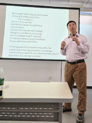 黎志敏教授在主持时强调,学好英语语法可以帮助我们使用正确的英语(correct English),而通过英语文学尤其是英语诗歌的学习,则可以帮助我们获得使用优美的英语(beautiful English)的能力。学会使用正确的英语,可谓合格的英语专业毕业生,而学会使用优美的英语,则能跻身优秀英语专业毕业生的行列。
