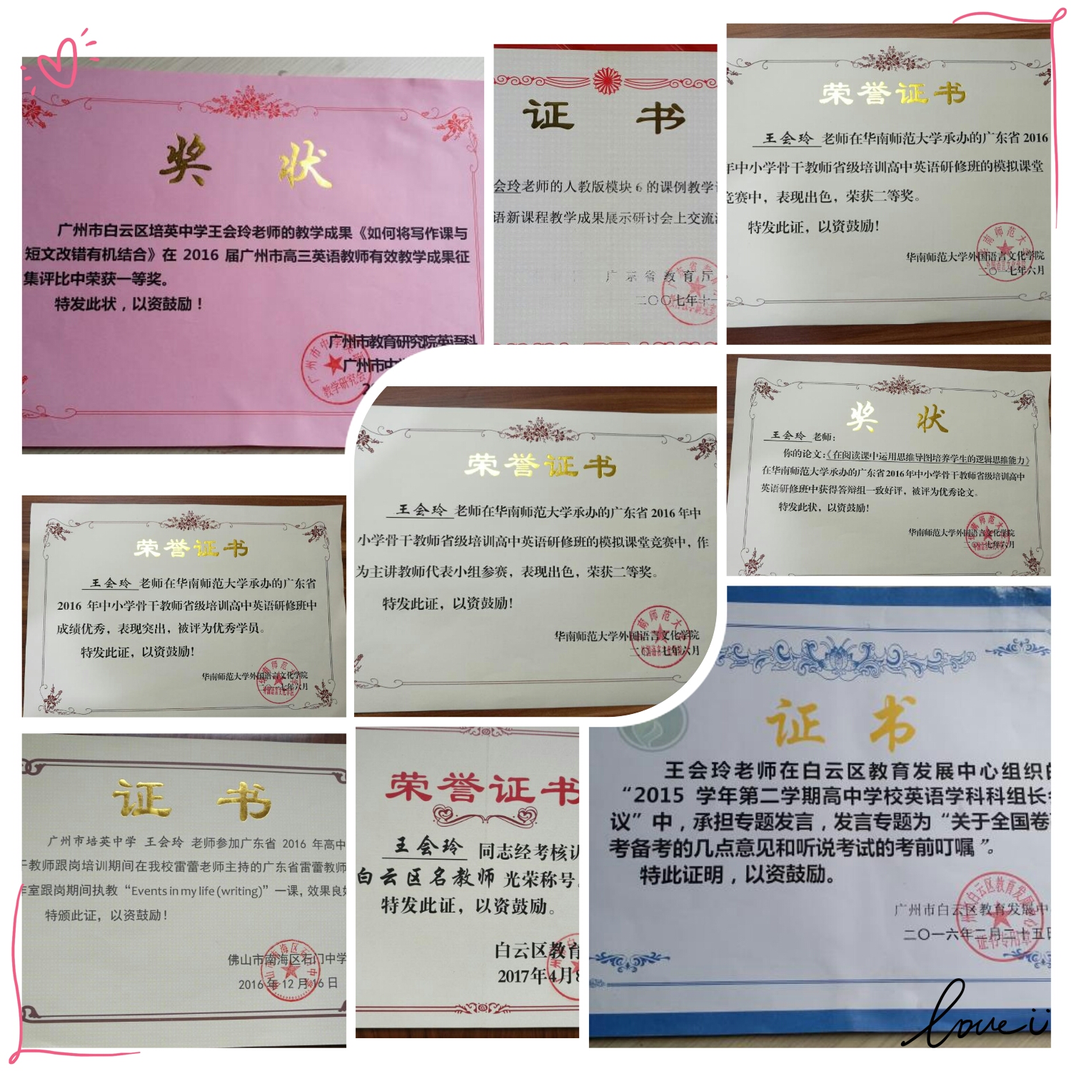 毕业后,师姐进入了广州市培英中学任教。在职期间,她始终对工作保持高昂的热情,从教20年从未想过离开三尺讲台。“如果把教师当作一份事业而不是养家糊口的工作,就不会出现职业倦怠。”她最大的成就感不是源于大大小小的荣誉证书,而是学生和同事的认可。“如果在工作中,你的同事觉得你是一个很好的工作搭档;你的学生觉得你是值得尊敬、学习的人,那才是最大的荣誉。”