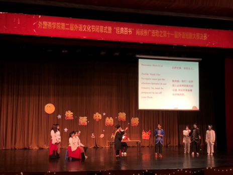 据了解,本次大赛是学院第二届外语文化节暨“经典百书”阅读推广活动的子活动。从2017年11月开始,历经了剧本创作大赛、演绎大赛的初赛、复赛和决赛等环节,每个环节都有专业教师进行指导和点评,有效提高了剧本和表演的质量。该比赛也成为学院的品牌活动,在师生中形成广泛影响。