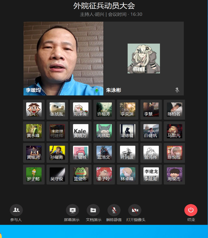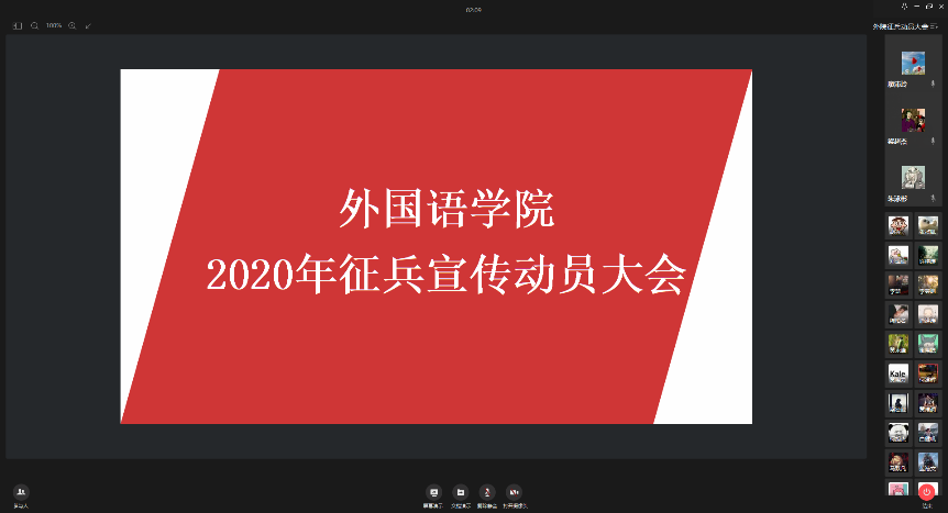 在企业微信平台召开2020年征兵宣传动员大会。学院党委书记李暖均、副书记李慧、征兵工作负责老师廖沛玲、全体本科及研究生男生出席了大会。