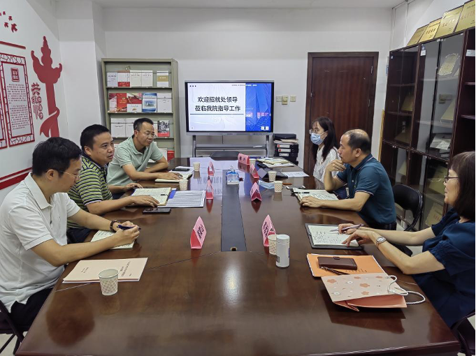 2022年9月28日上午,招生就业工作处处长林雪松、副处长谭启亮、招生办老师潘震山一行到色漫网 进行本科招生与就业工作调研,色漫网 党委书记李暖均、主管教学副院长苏远连、党委副书记许多恬、辅导员柳叶等参加了调研会。