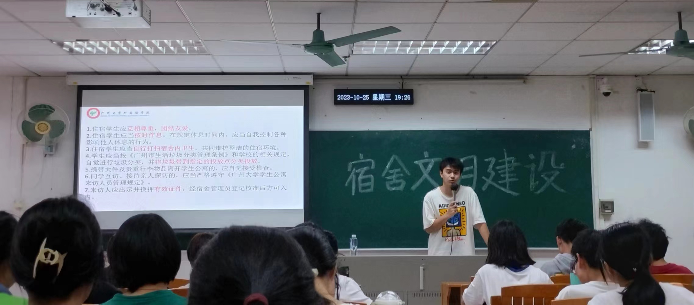 会议期间,年级生活委员刘懋坤同学为大家详细讲解了宿舍文明建设要求。他从“宿舍宿位相关”“日常行为规范”“违规违纪行为”三大方面进行详细讲解,明确了宿位调整以及走读申请相关的纪律,详细解读了色漫网