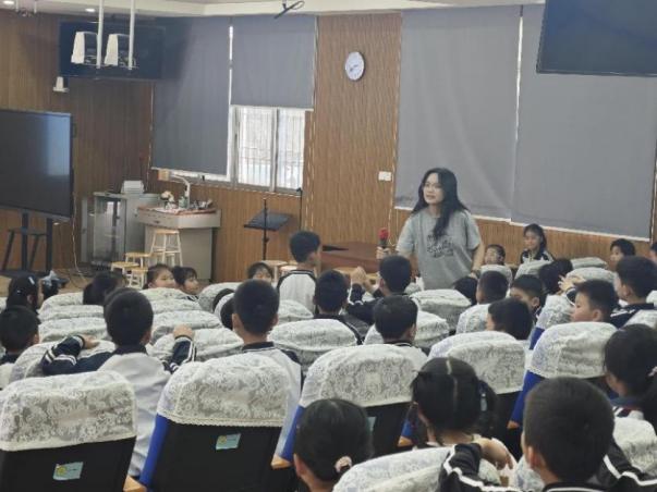 为积极营造“爱绿、植绿、护绿、兴绿”的浓厚氛围,突击队的队员们结合专业知识,开展了“知行合一,绿满容桂”主题讲座,用生动的案例和深入浅出的讲解,向小学生们普及了环境保护、垃圾分类、绿色生活等环保知识。队员们通过课件和视频等多模态资源详细讲解了植树节的由来和意义,并分享了一些实用的绿色生活小窍门。问答环节中,小学生们积极参与,气氛热烈。此外,突击队还精心组织了“击鼓传花”等互动游戏,让同学们在轻松愉快的氛围中学习环保知识,增强环保意识。