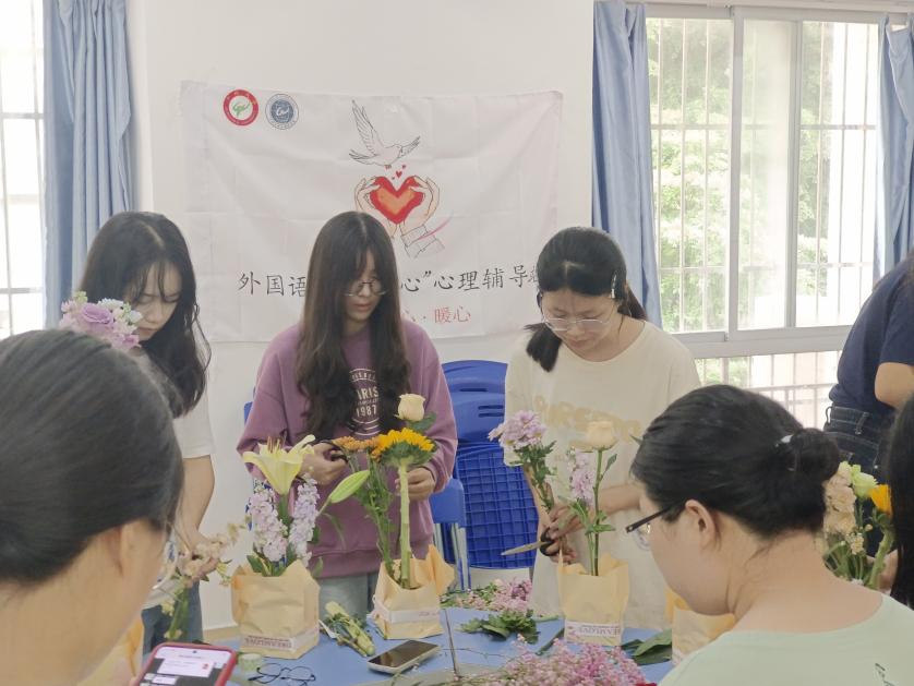 分工会与学院“润心”心理辅导站在梅苑10栋五室一站心情驿站组织开展师生心理花艺沙龙。
