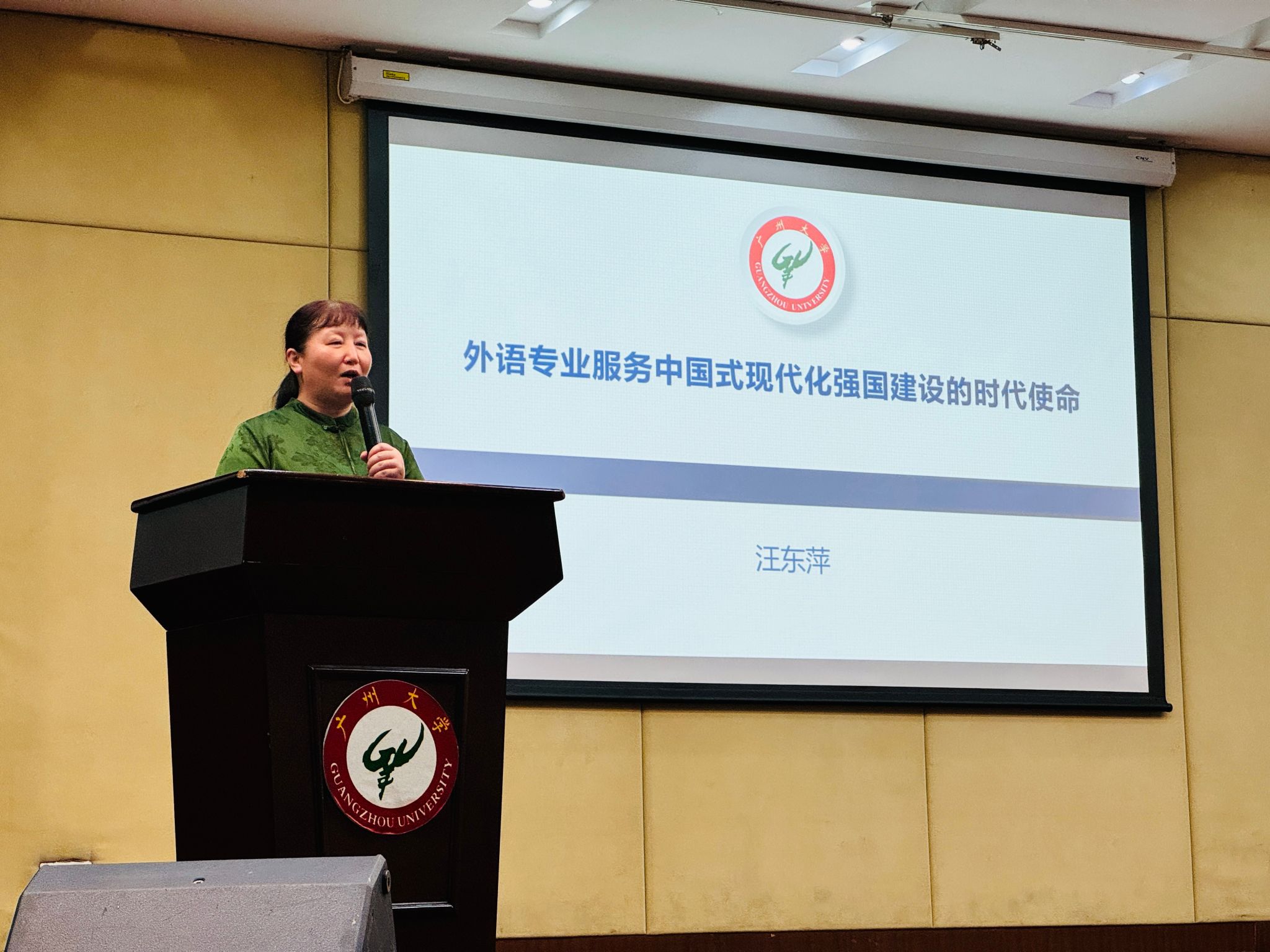 汪东萍教授以“外语专业服务中国式现代化强国建设的时代使命”为题,围绕中国式现代化的内涵与强国建设战略安排、外语专业如何服务中国式现代化强国建设的路径等内容展开,强调外语专业学生守住外语“看家本领”之余应全面发展,并提出“外语+”的概念,学生们受益匪浅。