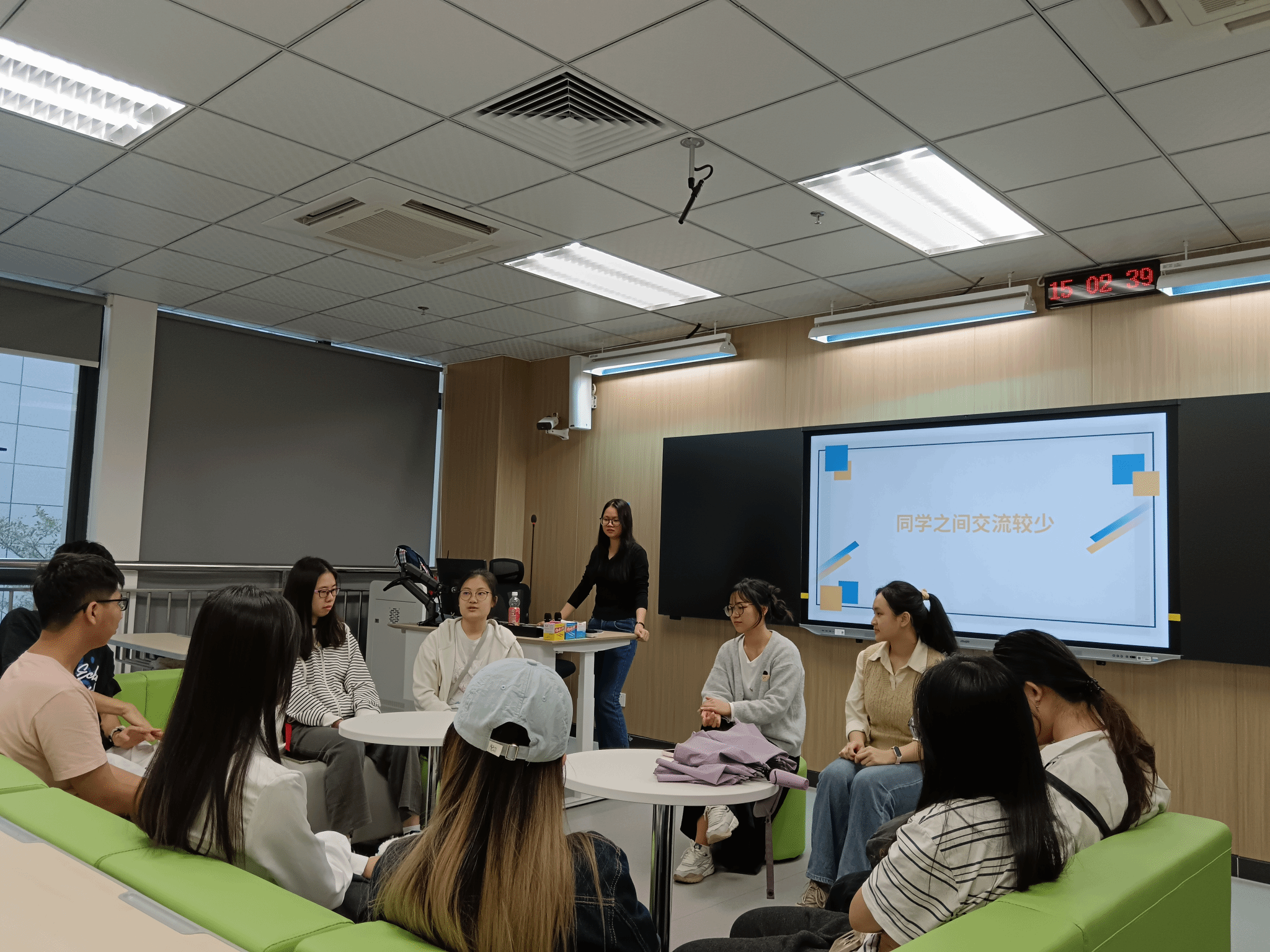 在“互动答疑与自由研讨”环节,针对前期收集与现场提出的具体问题,2023级班长逐一进行了细致解答。随后,参加人员分为若干小组,围绕“如何提升通知反馈效率”“班级决策如何更贴合需求”等议题展开深入讨论。小组代表在总结发言中汇报了讨论成果,提出了许多富有建设性的建议与设想。自由交流阶段,大家踊跃发言,互相启发,进一步拓展了交流的广度与深度。