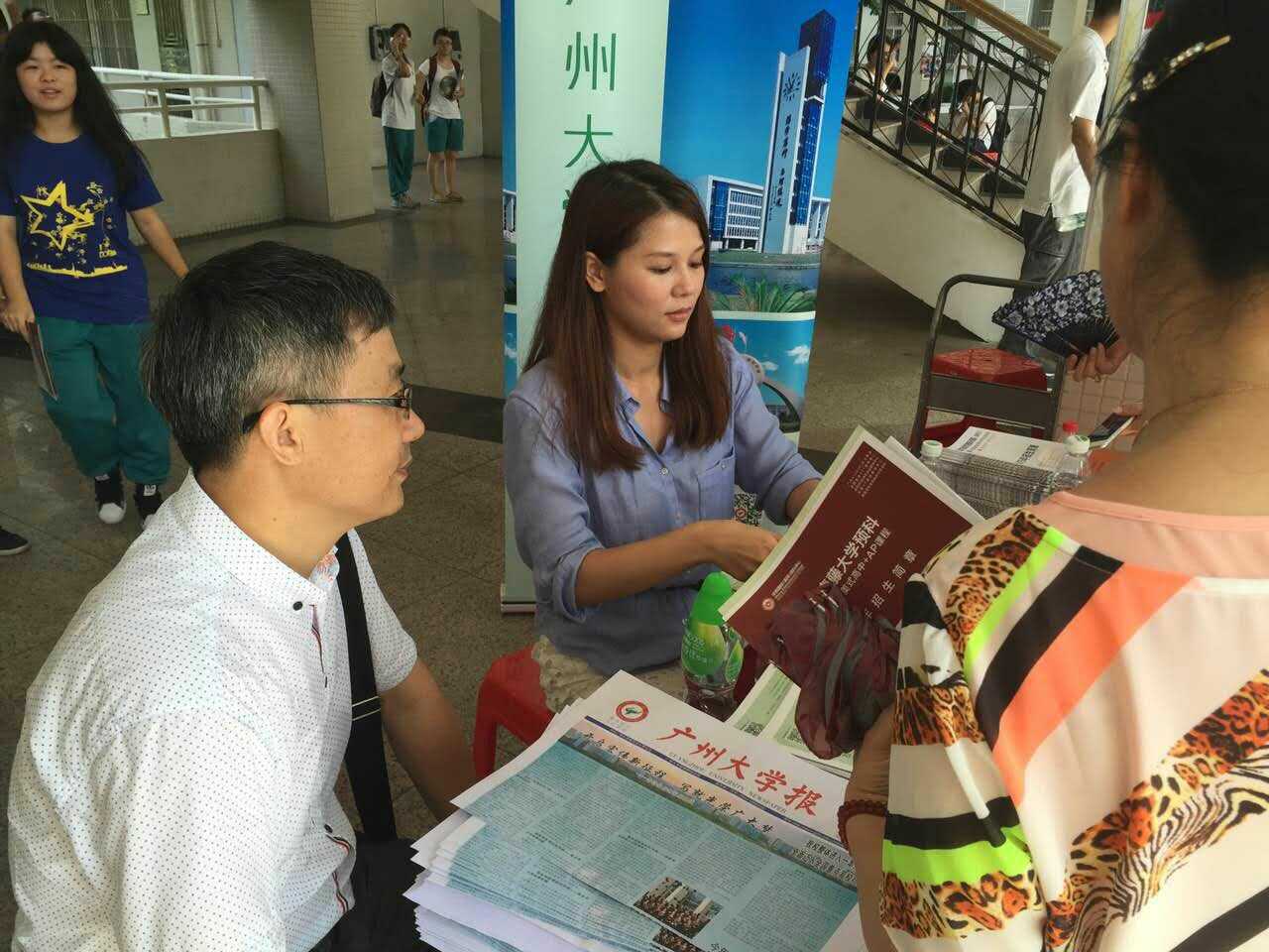 抽调了一批资深骨干专任教师组成了招生宣工作小组,经过多日的培训,6月26日、27日,工作组分成6个小组,在学院领导的带领下,分赴广东实验中学、广雅中学、协和中学、广州市第一中学、第二中学、第十六中学进行招生宣传,向考生及考生家长宣传我校的招生政策,以及学校的优势学科,并现场解答考生及考生家长的问题。工作组在各中学都受到了考生和考生家长的热烈欢迎,充分体现出学校近几年社会声誉度的大幅提高。