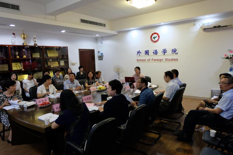 开展了为期一天的日语专业评估工作。专家组由广东外语外贸大学教务处副处长余盛明教授及东语学院院长陈多友教授、中山大学张兴教授、湖南大学张佩霞教授、暨南大学罗小红副教授组成。专家组分别从人才培养目标、专业建设规划、师资队伍建设、教学质量、培养过程、生源与培养效果、专业特色七个方面进行了全面的评估。