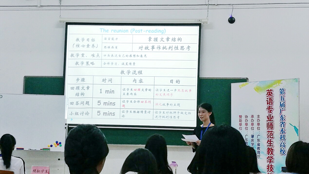 据悉,为了准备此次比赛,英语教师教育教研室的苏远连、陈丽虹、翁素贤、马静雅等老师一起为两位参加决赛的同学进行了充分的指导,提前进行模拟教学训练。比赛当天,所有选手只有60分钟的备课时间,要求完成12分钟的教学设计展示及授课,挑战非常大。色漫网