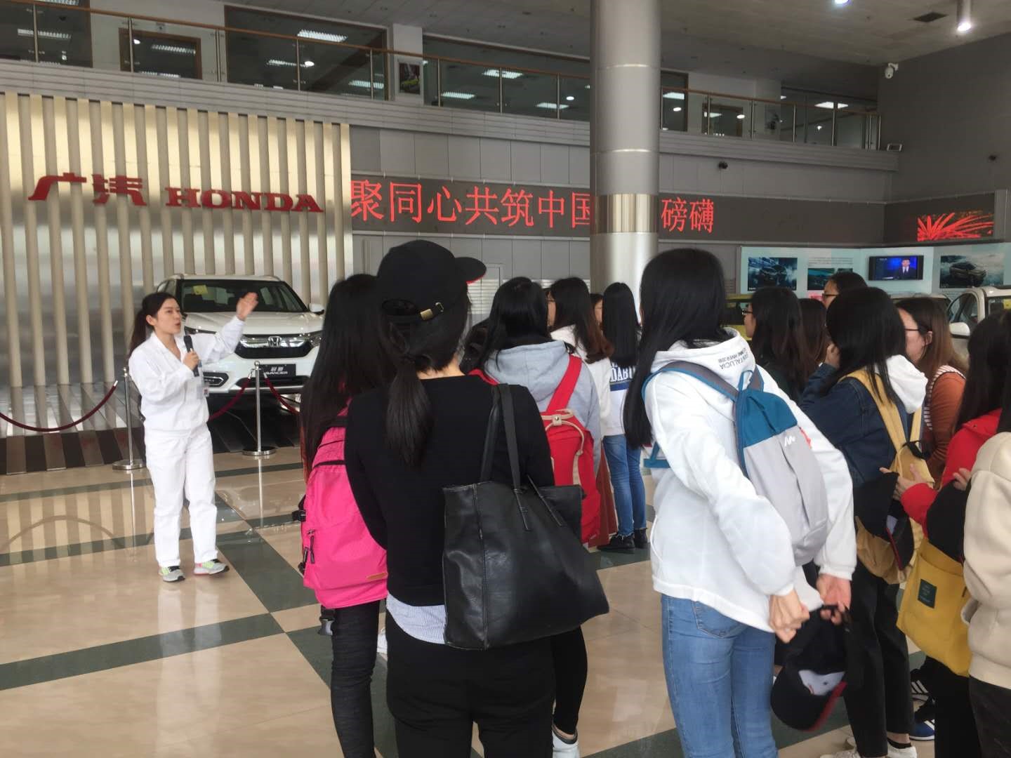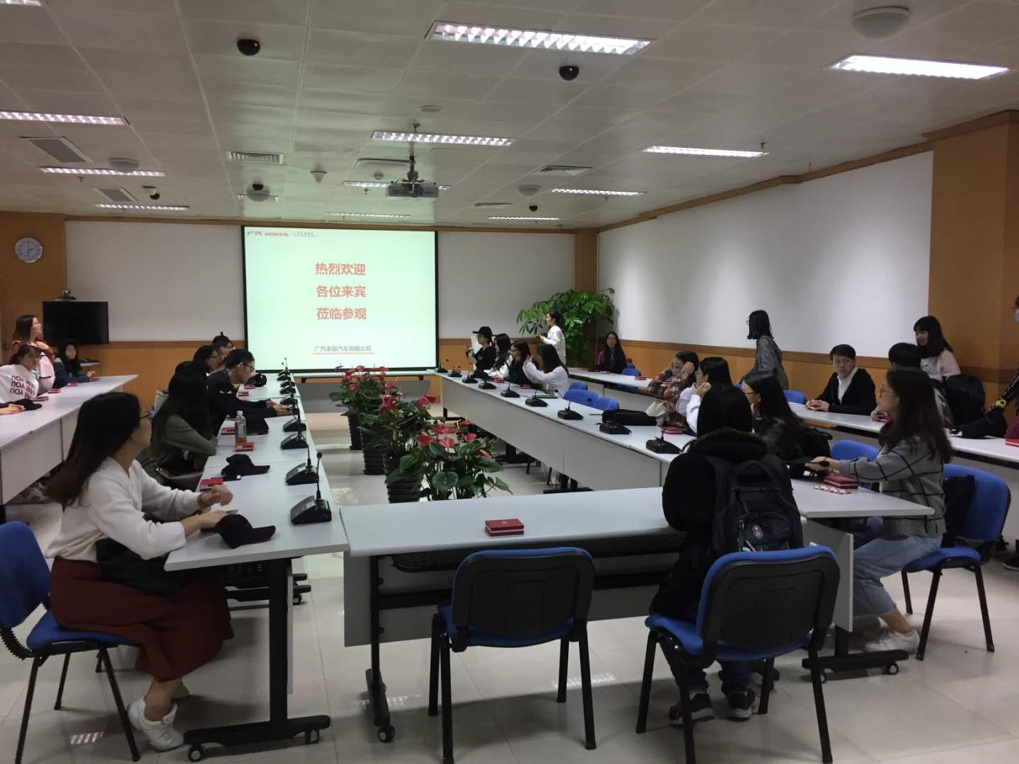 讲解人员为学生介绍了广汽本田公司一些基本情况,包括公司的品牌,奋斗理念等。紧接着还播放了宣传视频,让参观小组成员大概了解了广汽本田。