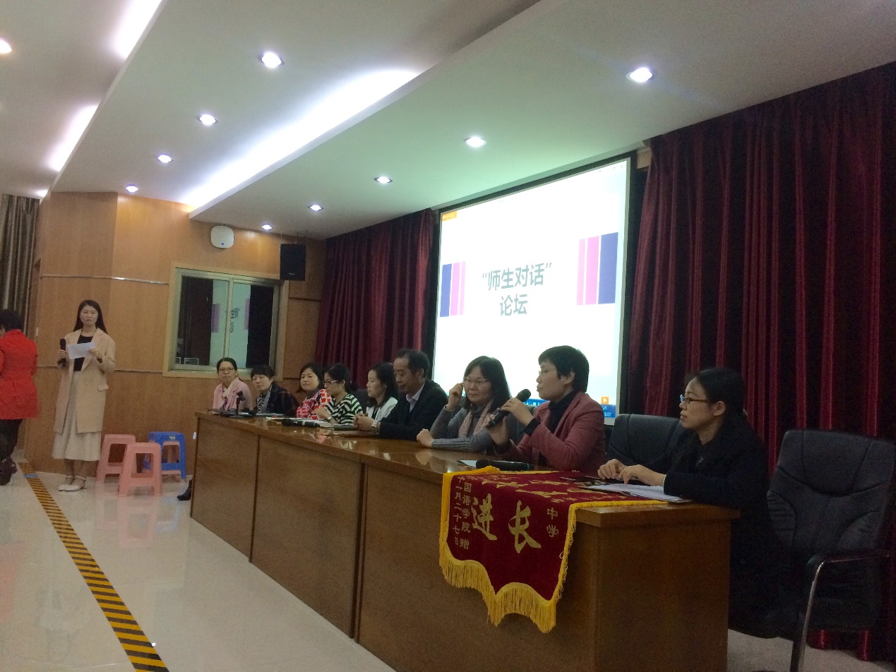 2014级袁培元同学在象圣中学英语科组全体老师指导下进行的课例。随后,与会代表包括冯页老师、苏远连副院长及该校的教师代表何燕敏老师从各个角度进行专业点评,使在场的师范生们对阅读课教学以及准教师们存在的普遍问题有了更深的认识。随后,在“师生对话”论坛环节,由参与论坛的同学们提前准备抽选十个典型问题,与嘉宾老师们面对面进行直接对话。鄢智青副书记、学工办主任李黎老师及象圣中学的老师们都倾力为同学们一一耐心解答。