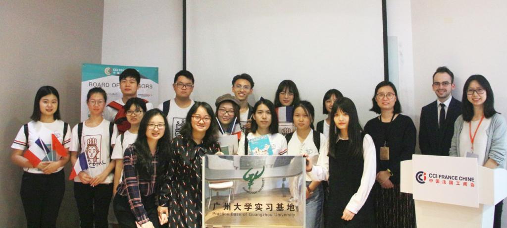 在中国法国工商会广州办事处,工商会人力资源总监肖斯琳和刘婉倩小姐给同学们介绍了中国法国工商会的团体会员和业务范围,为同学们提供了一个明确的就业方向。她们期待来年有优秀的广大法语学生可以来工商会参加实习和培训。