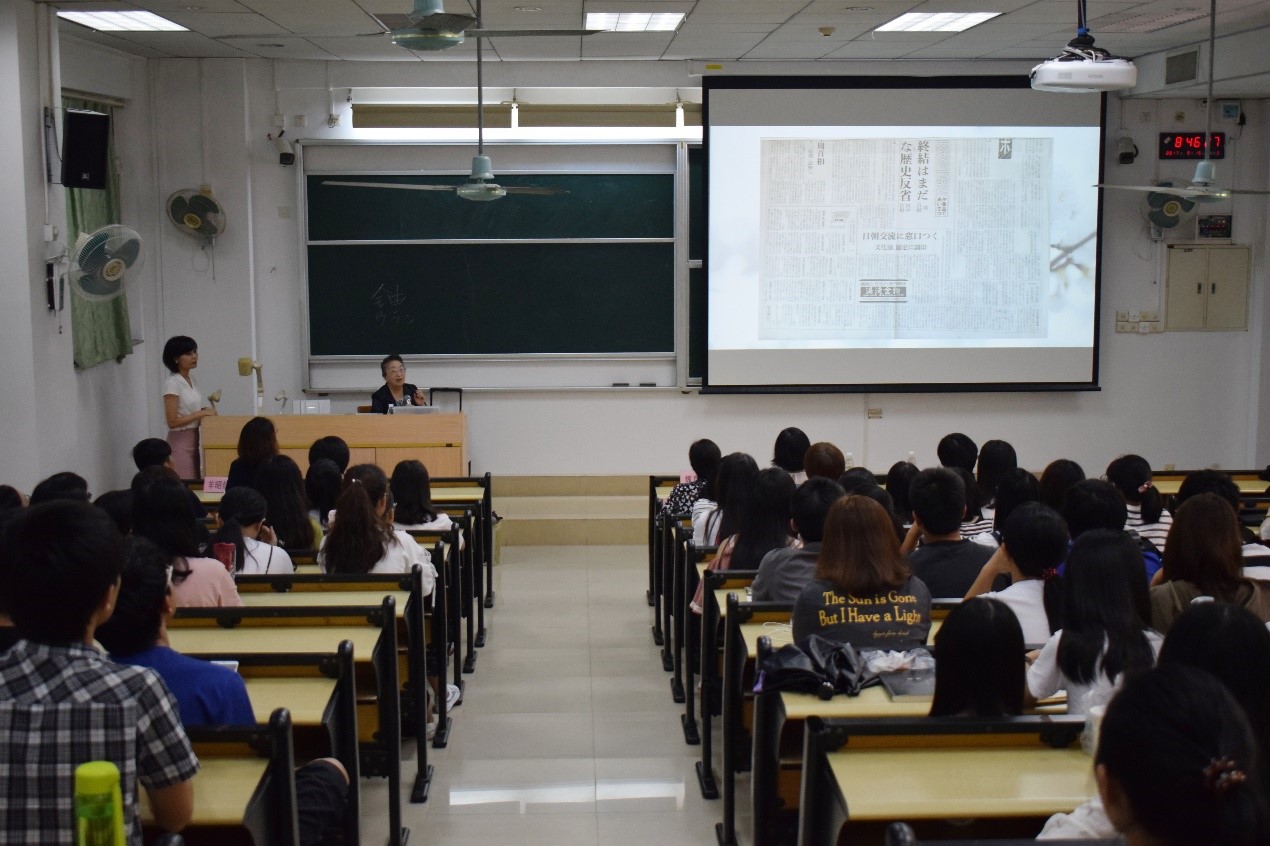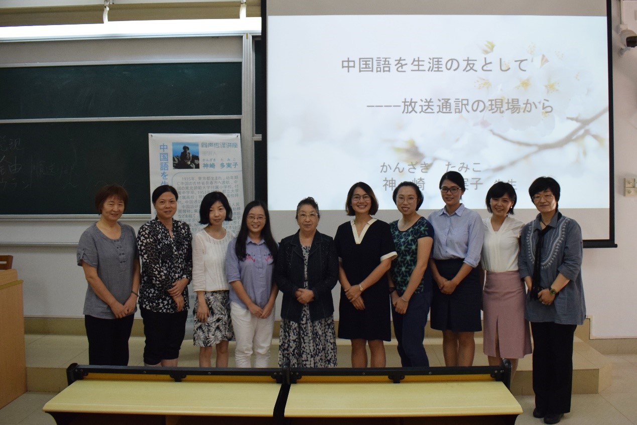 九月十五日,我系大二大三学生及相关老师在我校文清楼110教室参加了主题为“「中国語を生涯の友として----放送通訳の現場から」(汉语,我一生的好友----电视播报口译技巧谈)”的日语口译系列讲座。本次讲座有幸邀请到来自日本有着60年口译工作经历、日本最著名的汉语口译家神崎多実子老师为同学们做了详细的相关指导以及精彩的分享。