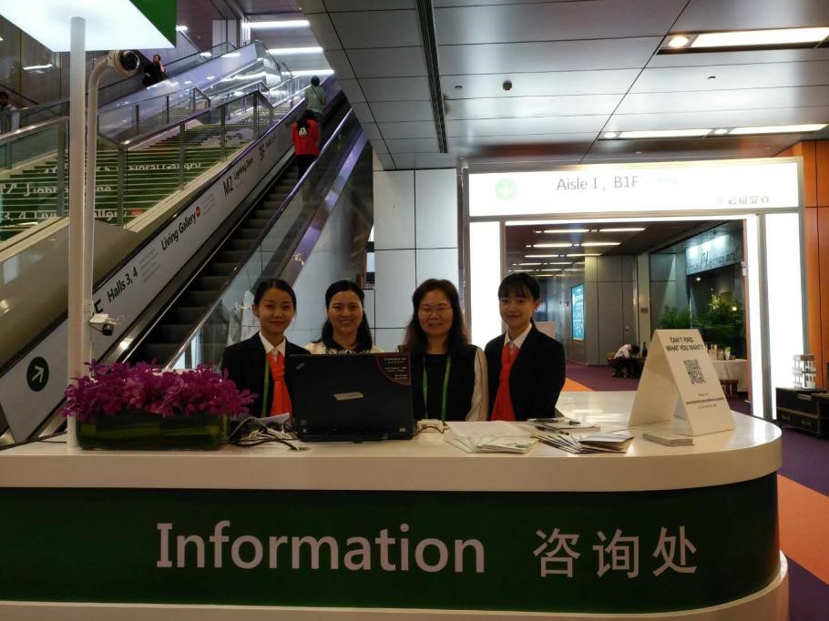在保利锦汉实习的学生共有45人,主要来自英语系国商方向、翻译方向以及法语系。实习生主要参与第37届广州(锦汉)家居用品及礼品展览会的现场组织工作,为参展的海外客商提供接待、展会咨询和引导服务。