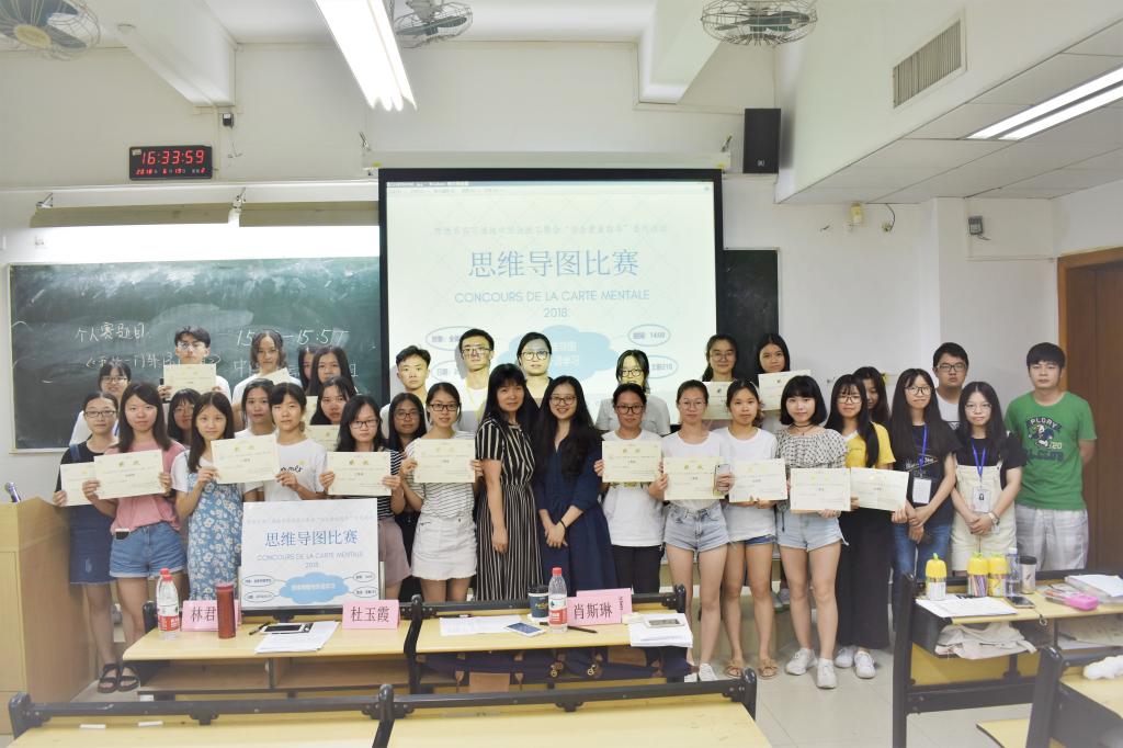 6月19日下午两点,西语系法语专业校级实习基地中国法国工商会“法企就业指导”系列活动——“思维导图与外语学习”比赛在文新223展开。西语系副主任陈潇老师主持了比赛。比赛评委包括我校教育学院杜玉霞教授、广东省教育技术中心发展研究部主任林君芬博士、中国法国工商会人力资源服务总监肖斯琳小姐和人力资源顾问刘婉倩小姐。