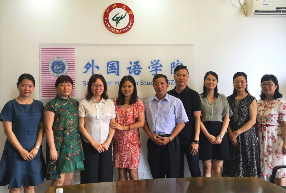 会议室与肖坤学院长、苏远连副院长及英语系几位教师进行有关合作培养本科跨境电商人才的会谈。
