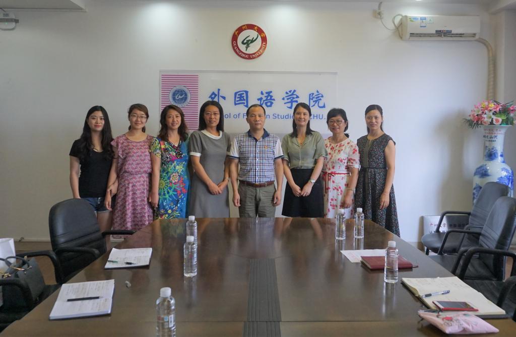 李暖均书记主持, 英语系主任陈姝、英语系商务英语教研室主任李春景、英语系英语语言文学教研室主任张黎琴参加了此次调研座谈会。