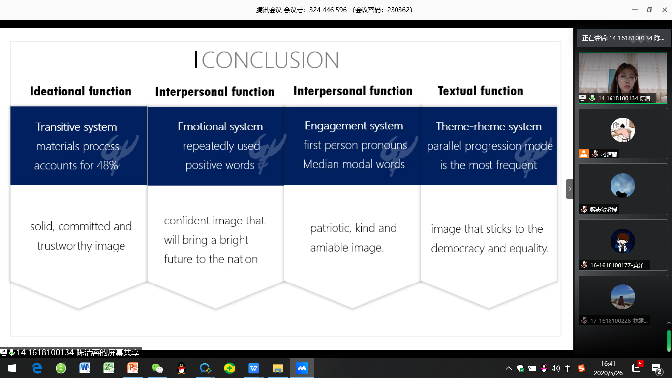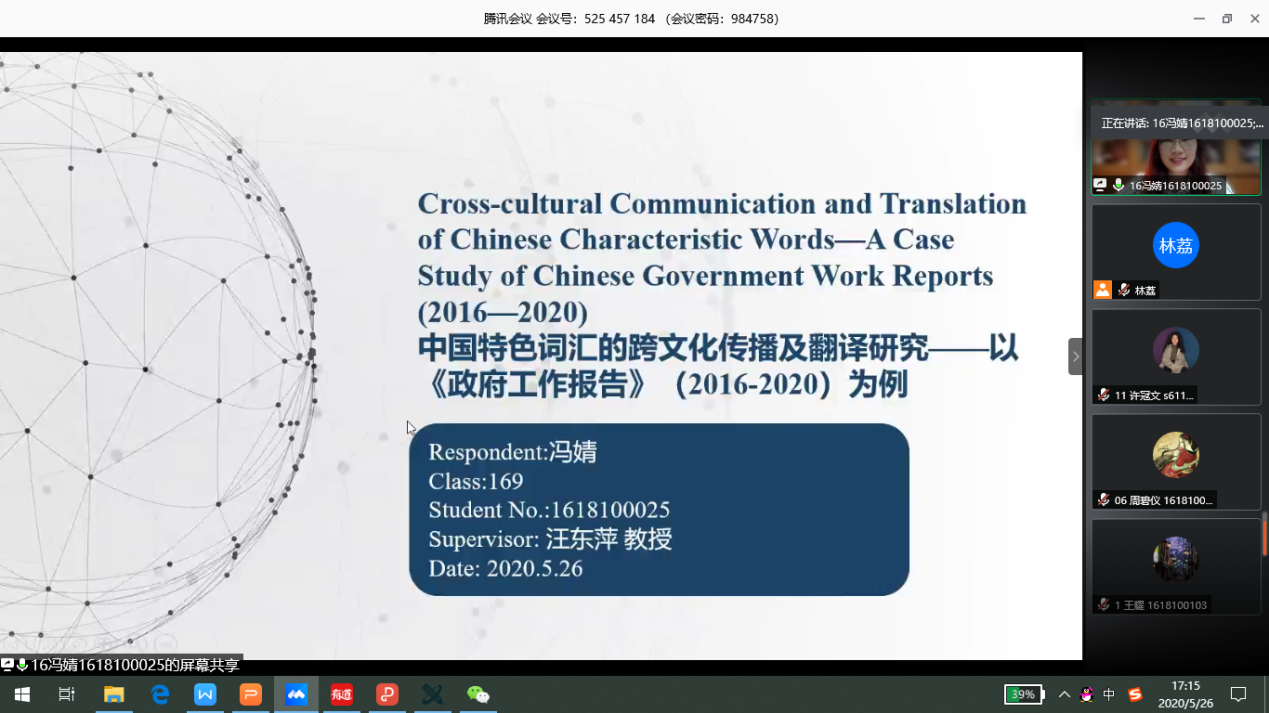 2020年5月26日下午,我系2020届本科生毕业论文全面答辩通过线上平台顺利进行。本年度共有英语专业、英语(二专)专业352位学生参加了本次线上全面答辩。网络答辩共分为18个小组,答辩过程跟线下答辩保持一致。为确保顺利开展本次线上答辩,英语系在色漫网