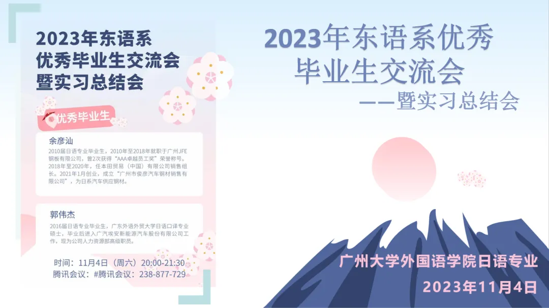 东语系通过腾讯会议举办了“优秀毕业生交流会暨实习总结会”。会议由日语专业21级费晓娟同学主持,徐淑丹老师致开场词。