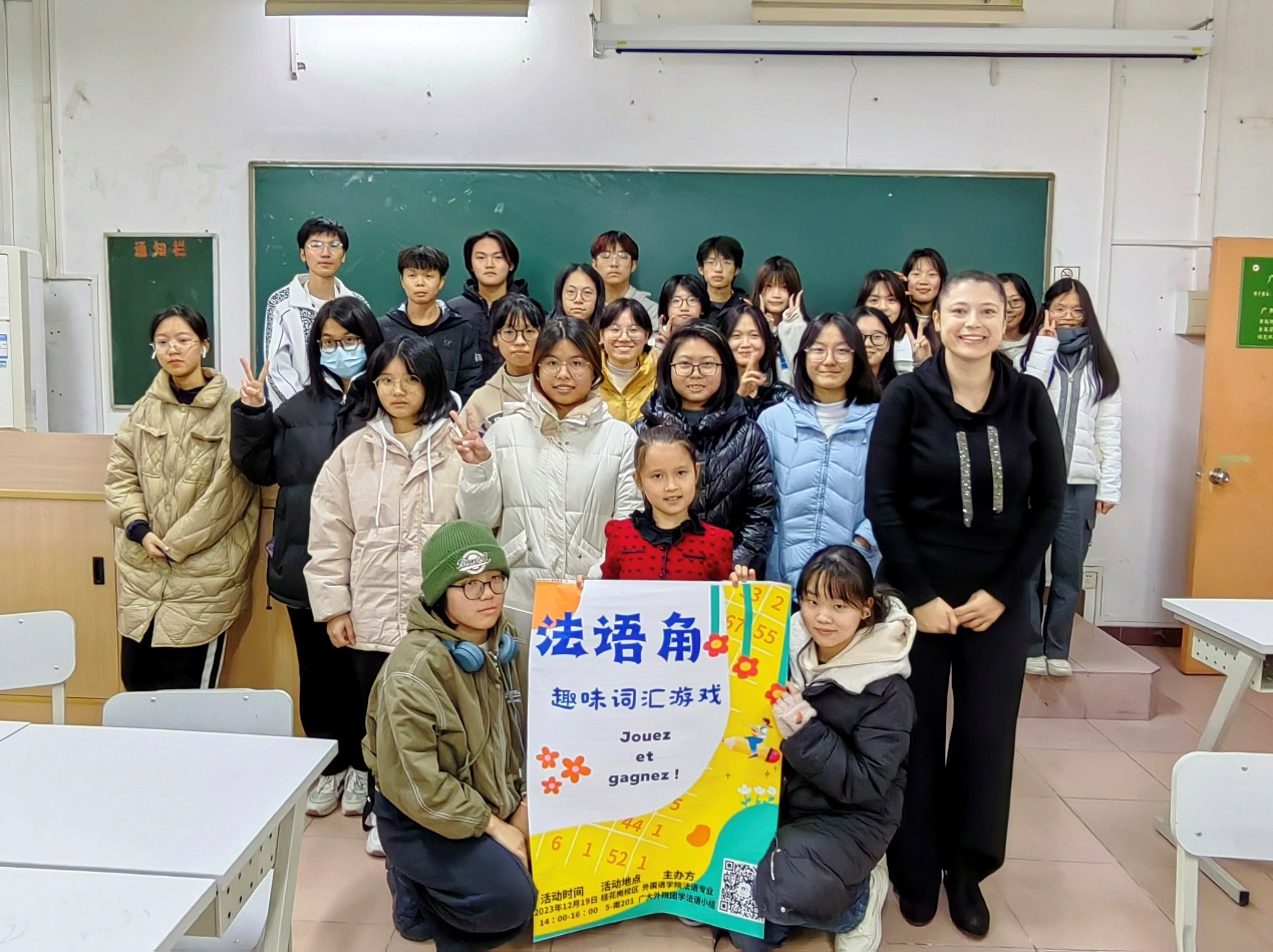 本次活动主题为“趣味词汇游戏”,包括Bingo游戏和主题词汇游戏两部分。活动伊始,Anne-Flore Vrac老师详细讲解了词汇游戏规则。随后,同学们分组展开游戏并进行比拼。活动中,同学们在体验了游戏乐趣的同时,练习了法语数字表达,学到了不同主题的法语词汇。
