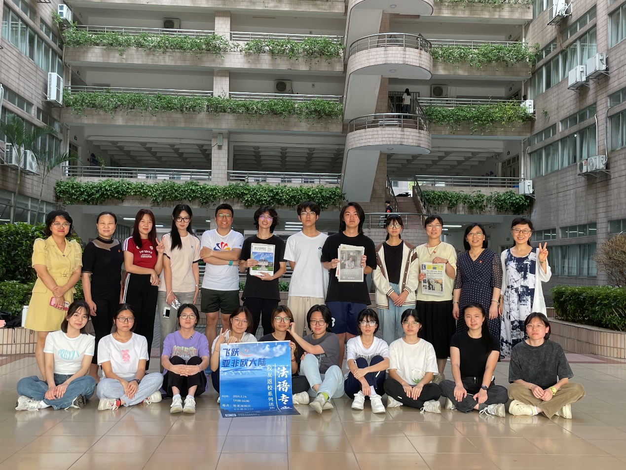 法语专业在桂花岗校区5号楼南209举办了法语专业优秀校友返校交流暨师生见面会。法语专业教师、校友苏咏豪与23级学生参加了本次活动。