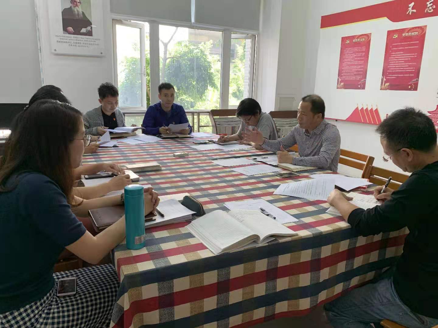 基层党支部开展“不忘初心、牢记使命”主题教育工作指引》文件内容及精神,解读《关于反馈落实“三会一课”等制度整改情况的通知》,强调学习强国平台的推动及今年发展党员的进度,要求各党支部书记加强党建理论学习,提升党务工作能力,按照主题教育办相关文件精神落实好各项工作。