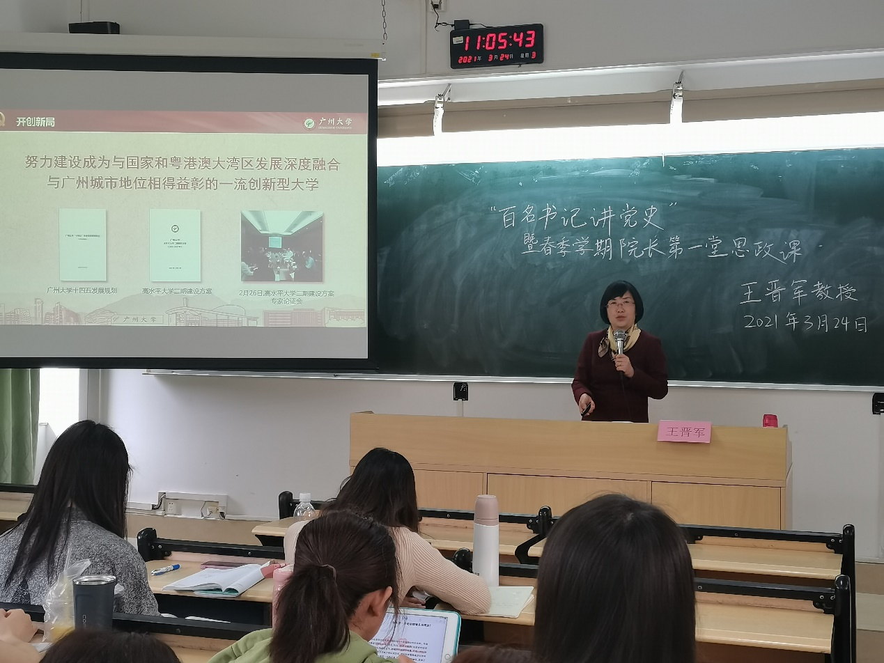 在大学城校区、桂花岗校区先后举行“百名书记讲党史”暨春季学期思政第一课活动。李暖均书记、王晋军院长和学生支部书记分别为本科生、研究生近400人讲授党史课。