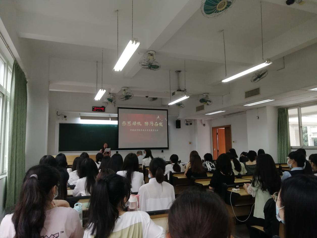 党委书记李暖均、党委副书记许多恬、学工办主任任洪蔚老师、18级辅导员陈远明老师及全体毕业生党员参与活动,会议由学生第一党支部书记徐慧老师主持。