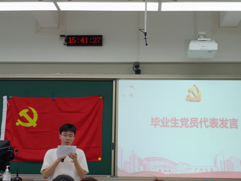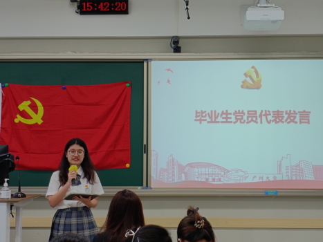 接着,学生第一党支部黄思隆同学和第二党支部苏恺欣同学作为毕业生党员代表发言,他们以自身优秀的事迹与全体毕业生党员一道共勉,为国家和社会贡献自己的青春力量。