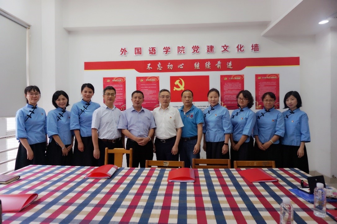 东西语系联合党支部以“双语诵读治国理政,凝心聚力立德树人”为主题,开展了“青年教师中国诵”专题组织生活会。学校郭兴蓬副校长、学院党委书记李暖均、学院院长肖坤学、副院长徐歆玉以及东西语教工党支部7名党员参加了本次会议。