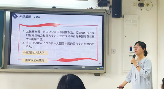 卢秋燕老师以“外媒如何看中国,我们又应如何理解当代中国”为引子,带领听众走进法国媒体的报道,为我们揭开答案。最后,在场各位围绕“我们如何更好地向世界讲述中国故事”展开了积极的探讨和互动。