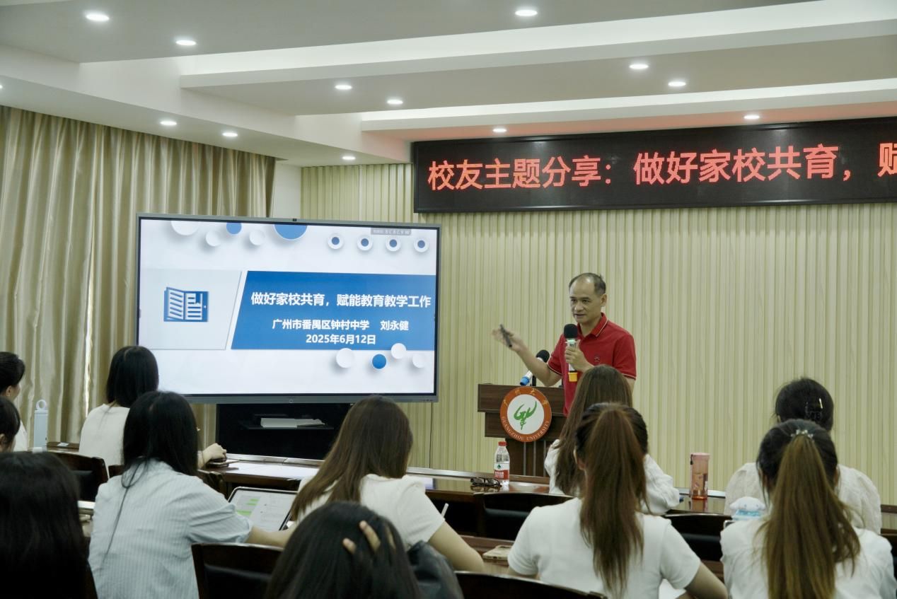 6月12日上午,刘永健校友立足近三十年的从教经验,开展“做好家校共育,赋能教育教学管理”专题分享。通过“角色定位黄金三角”“沟通五步法”等模型,解析如何以家校合力缓解教学管理压力。他强调:“教师需从‘单兵作战’转向‘资源整合’,家校共育是提升当前教育教学质量的关键。”在自由讨论环节,参会同志分享相关的案例经历,讨论氛围浓厚热烈。