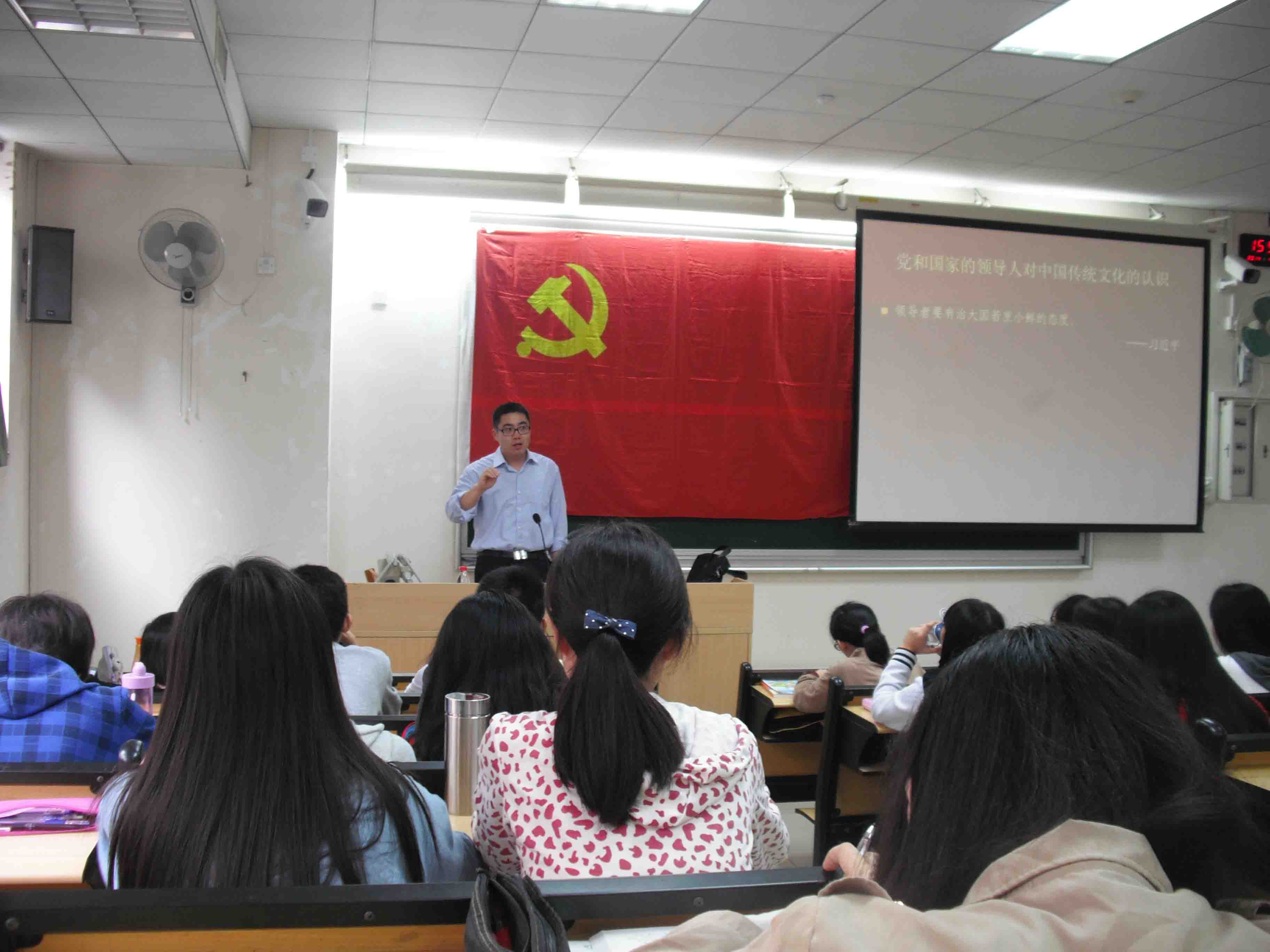 一开场,赵德波教授便提出:作为党员,学习和研究中国传统文化是非常有必要的,我们要以此加强自身修养。通过列举国家领导人对中国传统文化的认识,他提倡同学们要积极学习独具特色的中国传统文化,特别是在全世界广为流传的儒家文化。课上,他围绕儒家思想、孔子和《论语》、“仁”、“礼”、仁与礼之关系五个方面展开了介绍。短短一节课,同学们领略到了儒家文化的超凡魅力。
