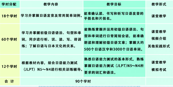 外语培训中心 小语种(日语)教学计划