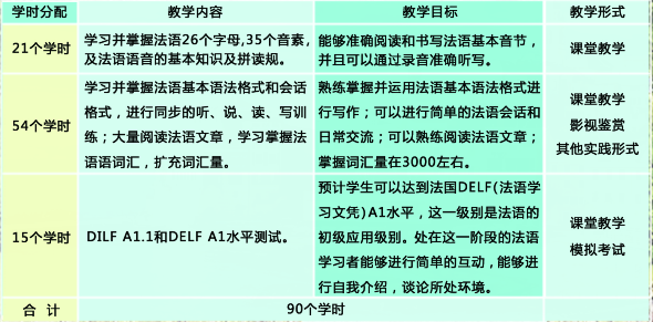 外语培训中心 小语种(法语)教学计划
