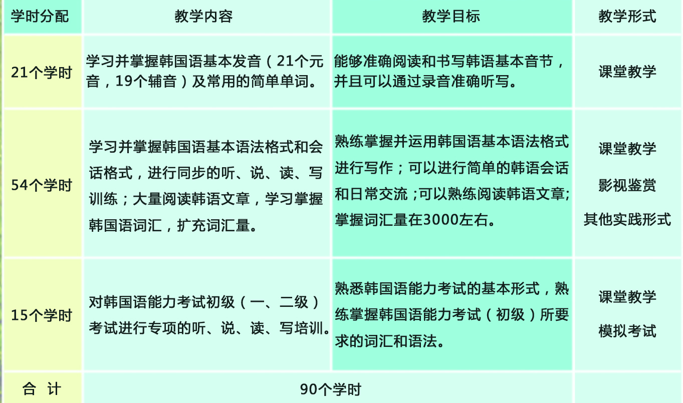 外语培训中心 小语种(韩语)教学计划