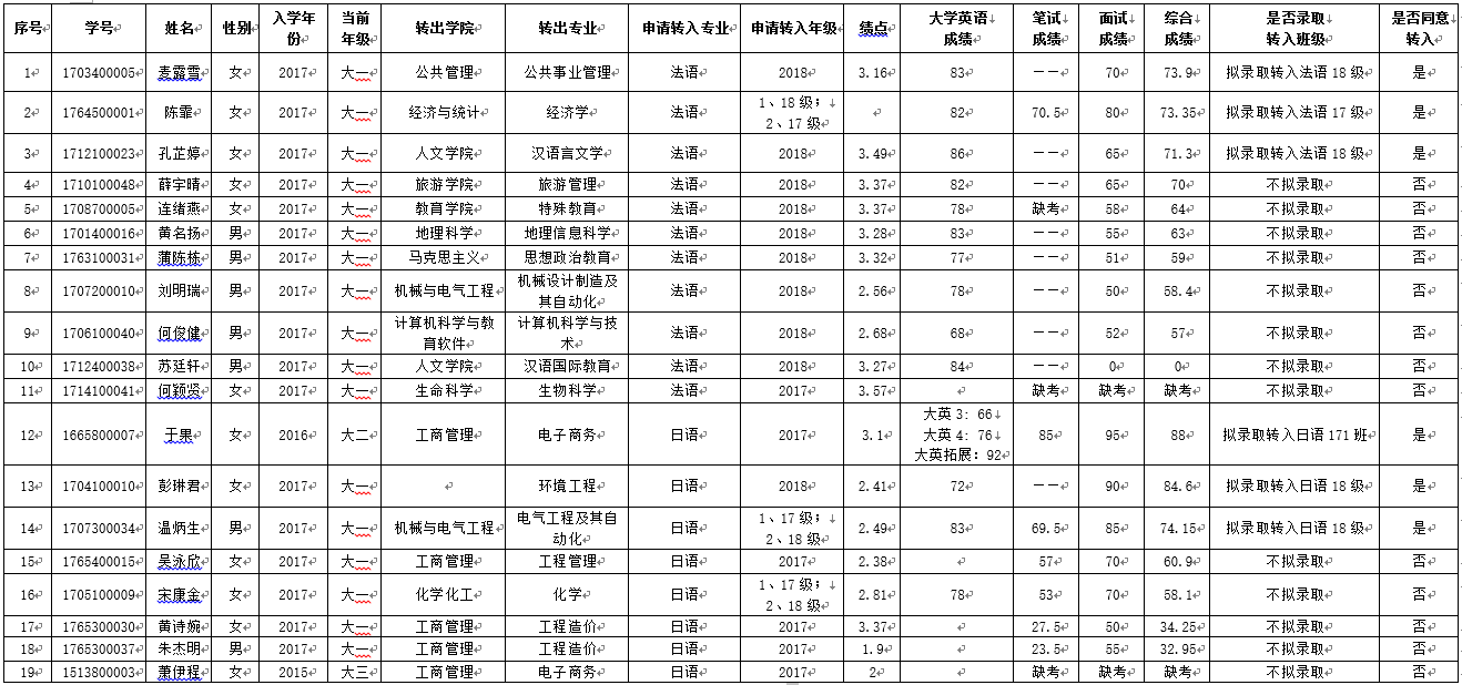 本科生转专业工作实施细则(2017年7月修订)》(广大〔2017〕201号)的有关要求,经学院审核和考核等程序,拟同意麦露雪等6名学生转专业,现予以公示。