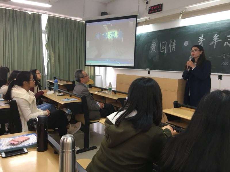 日语171班的领导、我校副校长郭兴蓬教授深入课堂,与该班师生一起参加了“爱国情青春志”的支部主题团日活动。