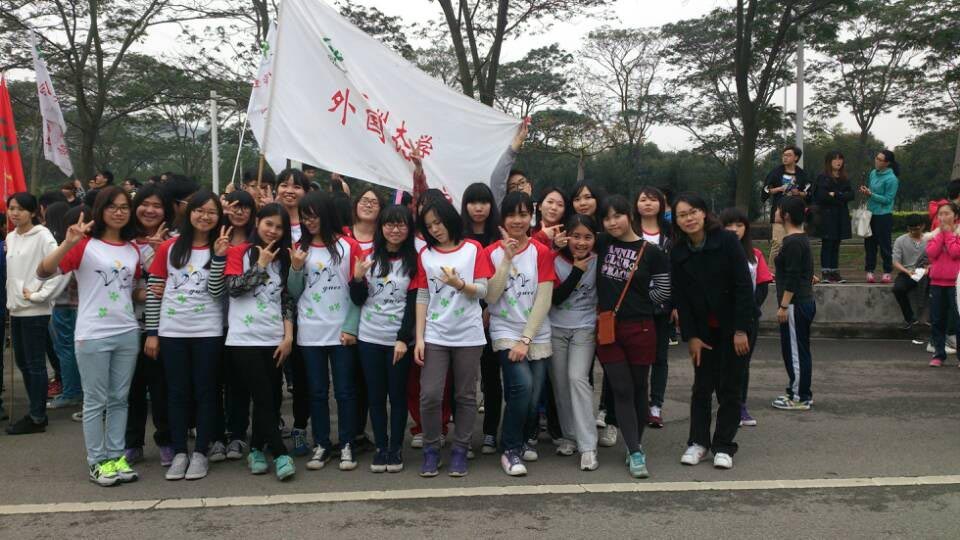 的男生代表举着院旗一马当先跑在队伍的前面,后面的女生都井然有序地跟在后面,不管累不累,她们都不甘示弱,一路坚持勇奔终点——篮球场,奔跑的快感让她们遗忘了一路下来的酸痛,面露笑容,合影留念。彰显了“外院精英,活力非凡”的精神。在采访中,132班的班长尹建欣说:“虽然很累,但真心觉得这个活动让我们发现了自己平时锻炼的不足,让我们明白了运动的重要”。