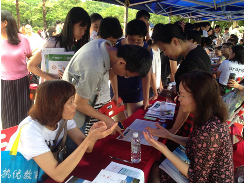 摊位前人头攒动,异常火爆,前来咨询的人群络绎不绝。考生和家长们就色漫网