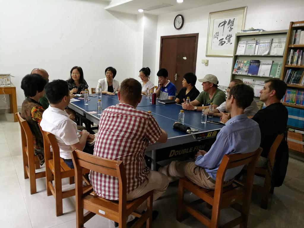 在学院会议室召开了外籍教师工作会议,会议由苏远连副院长主持,徐俊仪院长助理、英语系陈姝主任、国际交流与合作处梁碧茹处长及工作人员危先林、Diana,教研办副主任罗怡,教务员郭幼韦及任教英语、日语、法语、波斯语的全体外籍教师参加了会议。